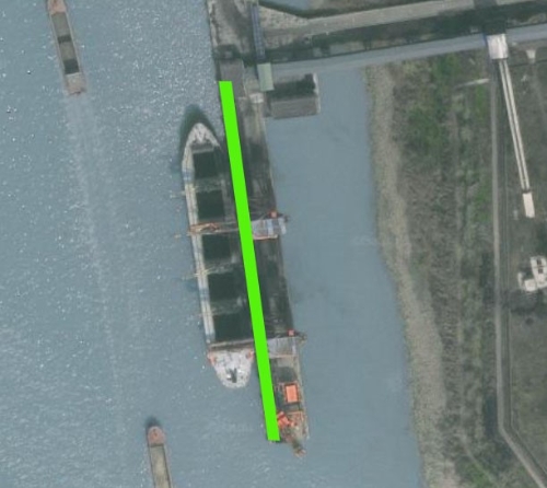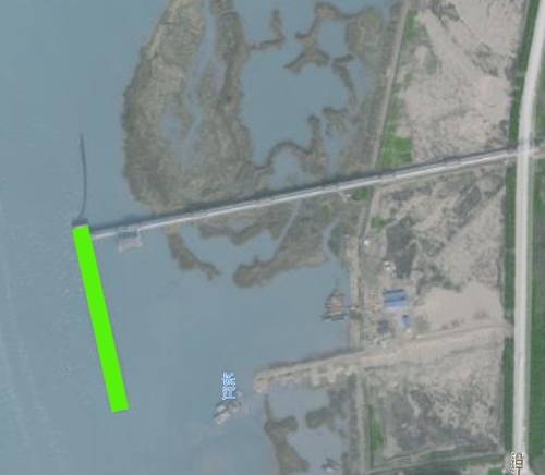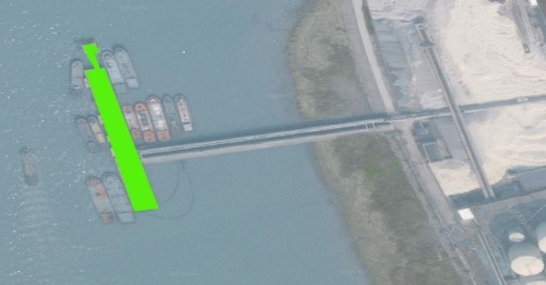 泰州港务集团有限公司口岸限定区域:杨湾码头开放泊位作业平台外侧2米宽度区域。(图中绿色区域部分)