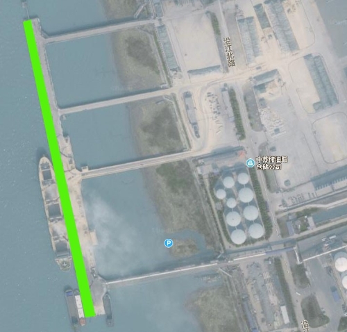 国家能源集团泰州发电有限公司口岸限定区域:国电码头开放泊位作业平台外侧2米宽度区域。(图中绿色区域部分)
